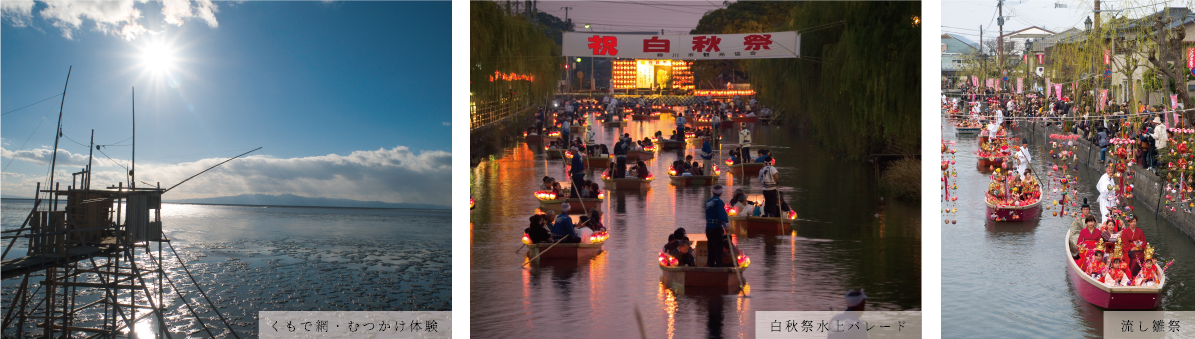 水天宮や、おにぎえの囃子の太鼓や笛の音、どんこ舟の上で感じる白秋祭の賑わい。